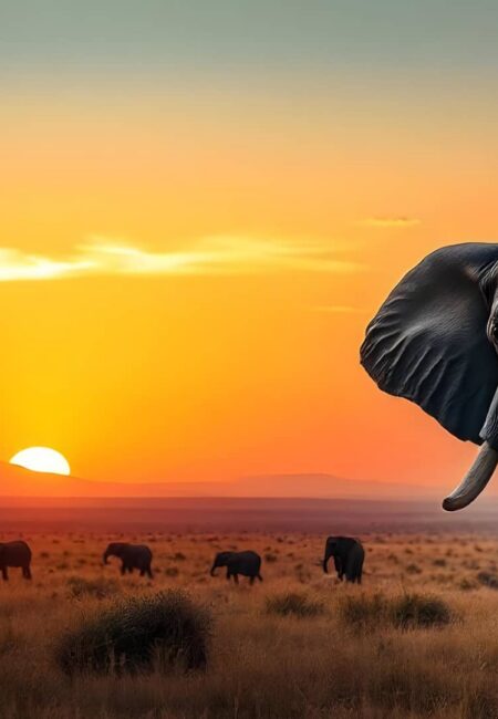Elephant walk at Sunset